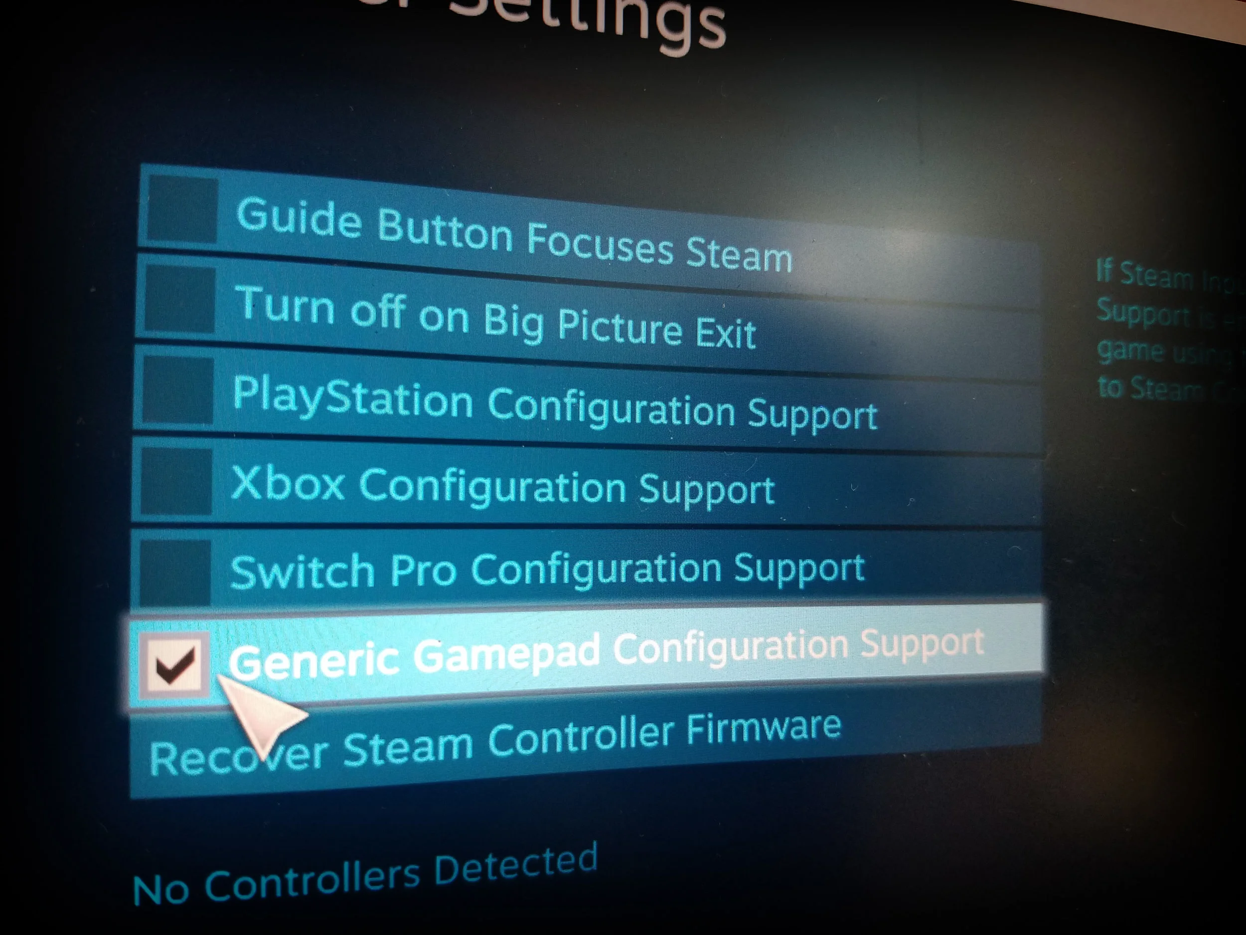 For controllers not listed above, particularly DirectInput controllers, compatibility is not guaranteed. However, having Steam apply Generic Gamepad Configuration Support can help in some cases.